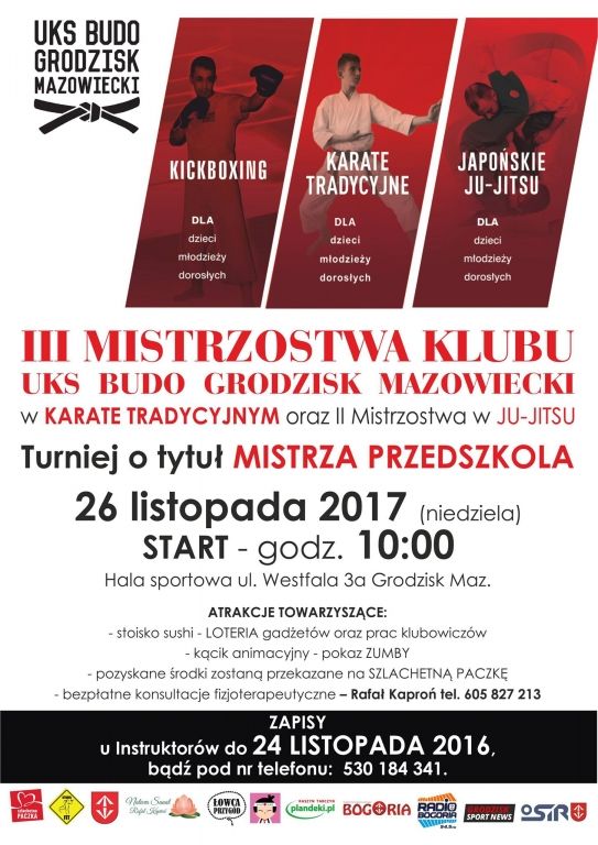 Zapraszamy serdecznie Wszystkich klubowiczów do wzięcia udziału w III Mistrzostwach Klubu 2017 pod patronatem Burmistrza, mistrzostwa odbędą się 26 listopada 2017 (niedziela), zapisy u Twojego trenara lub w biurze u Pani Ani.